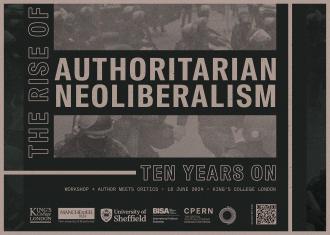 It is with these pressures, transformations and developments in mind that we invite you to join us for a one-day workshop at King’s College London to celebrate and reflect upon the article’s impact, and open up new discussions around the utility and relevance of ‘authoritarian neoliberalism’ in the post-pandemic conjuncture. The workshop will host 3 sessions populated with invited and unsolicited contributions, and conclude with a plenary roundtable featuring Ian Bruff (University of Manchester), Insa Koch (University of Sankt Gallen), John Narayan (King’s College London), Aleksandra Piletić (King’s College London) and Angela Wigger (Radboud University).